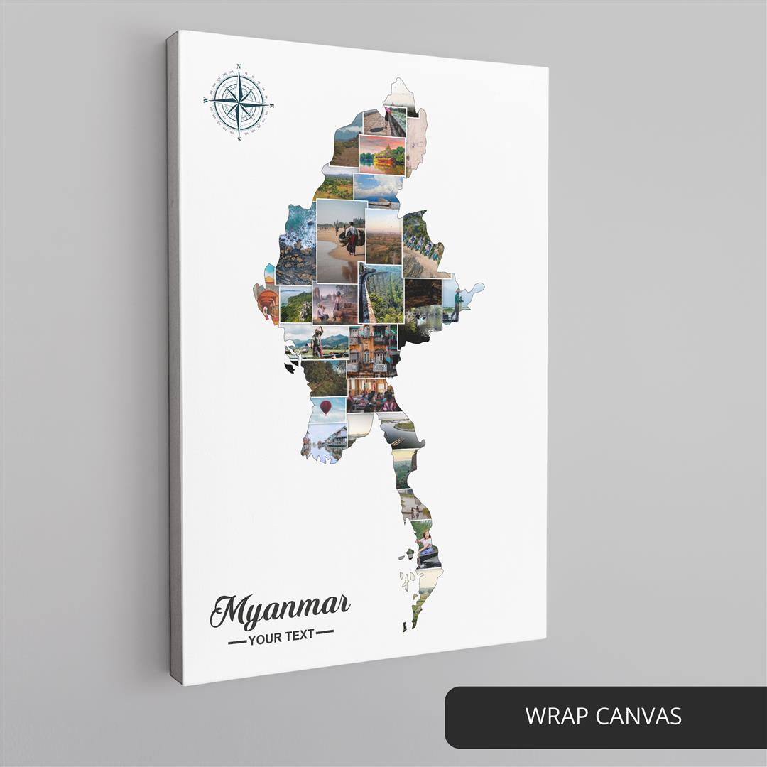 Personalized Myanmar Map Photo Artwork Collage Gift